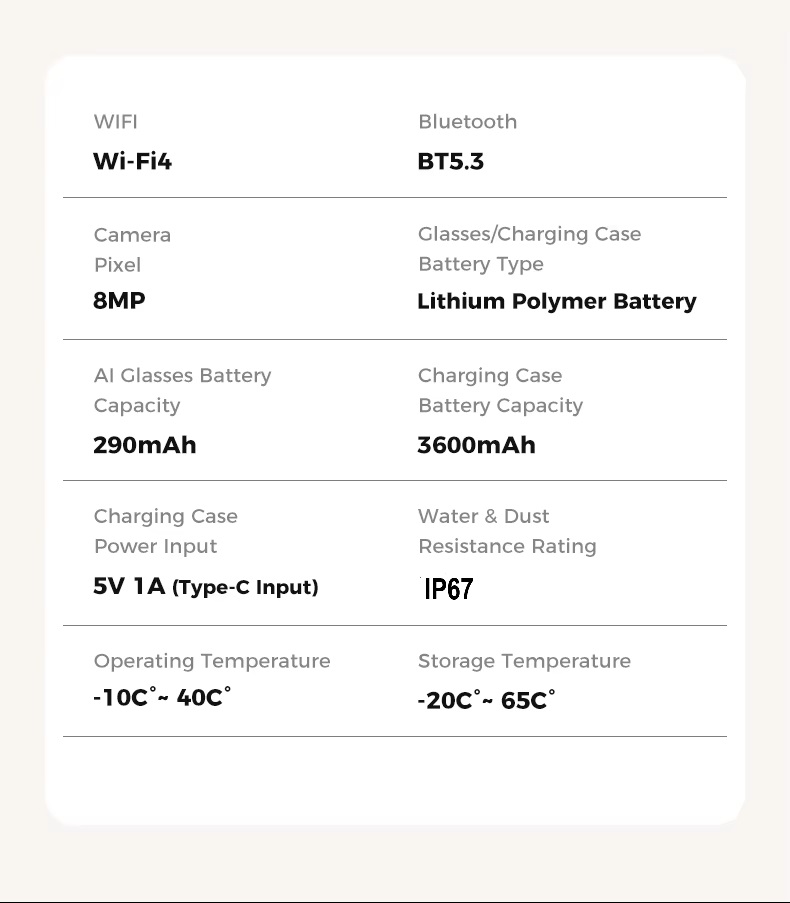 The glasses offer all-day usage with multiple recharges from the 3600mAh case.
